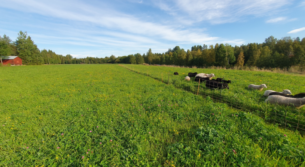 På den testade åkern kommer vi de närmaste åren att fortsätta mätningarna. Resultaten blir allra mest intressanta med en plan för jordförbättrande åtgärder och upprepade tester på samma plats i en serie av år. På Hemåkern är planen både ökad kolinlagring och ökad jordhälsa, och för att åstadkomma det kommer vi jobba med planerat bete och en mix av vallväxter som är bredare än standard-frömixerna. Vi spetsar vallarna med bland annat kummin (se bild nedan).
